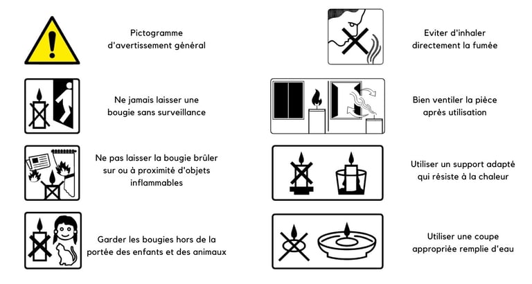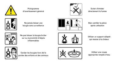 2. "Ne pas laisser la bougie brûler sur ou à proximité d'objets inflammables"